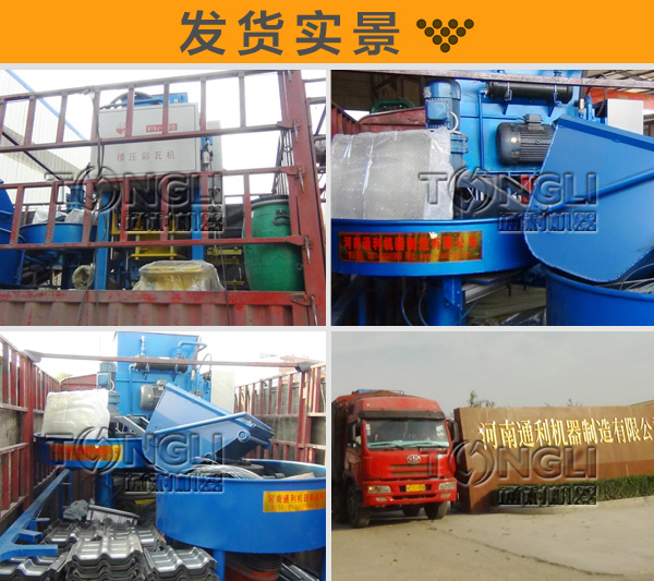 通利彩瓦機是用來做水泥彩瓦的,做出來的瓦色彩光樣、光亮、平滑、完整、無翹曲、無裂紋,市場銷路非常的,是廣用戶的道路。